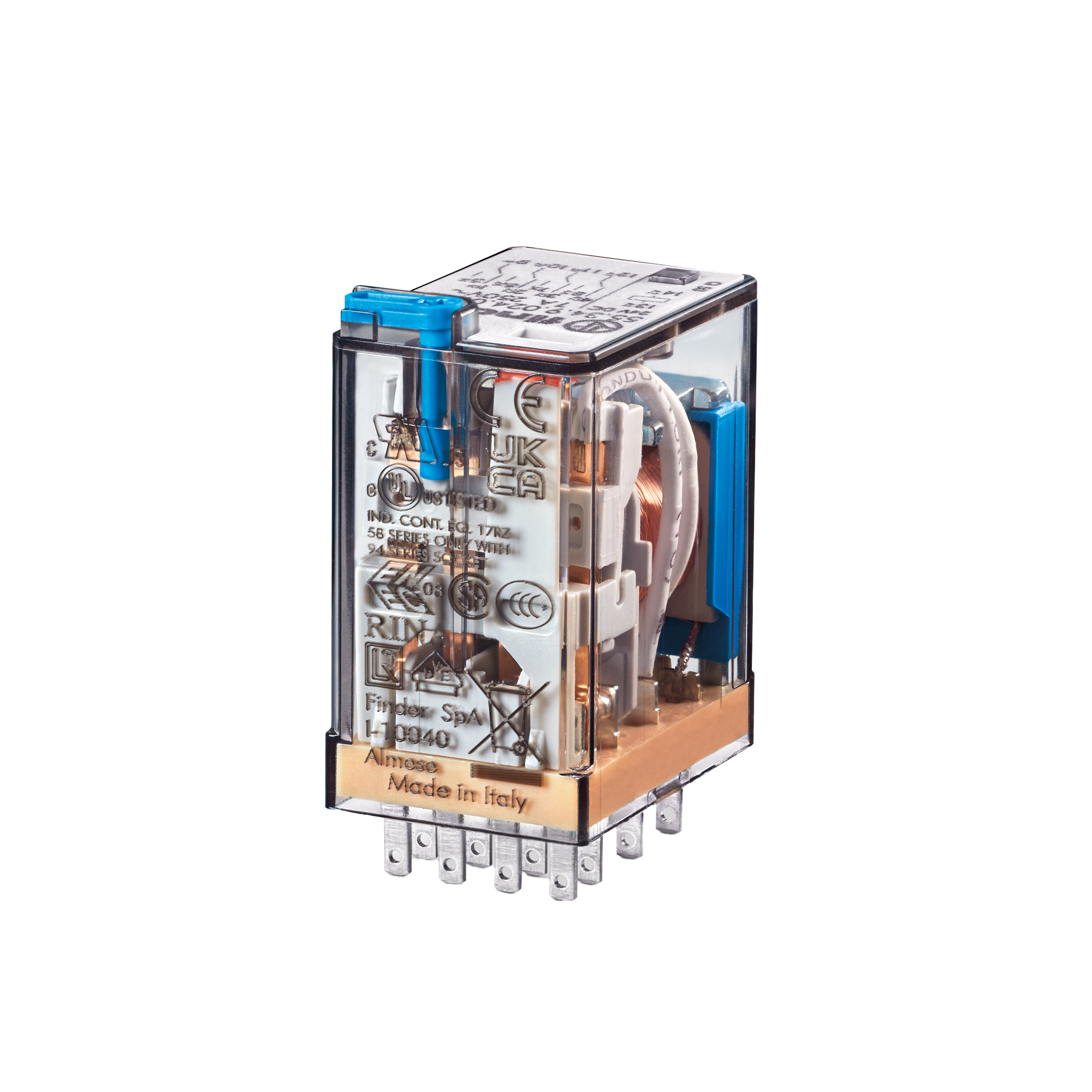 FINDER 55.34.9.024.0040 - Relé Industrial 4 Contatos Reversíveis 7 A 24 VCC | Para Base Série 94